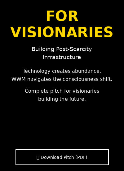 ✓ Technology moves faster than consciousness — visionaries build infrastructure, WWM addresses